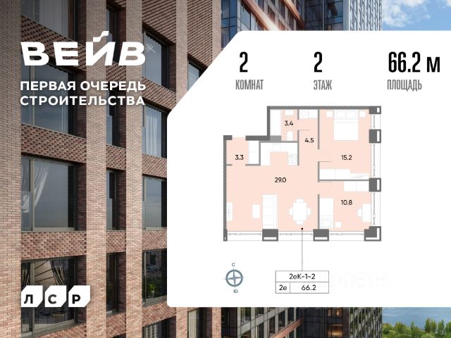 Продается 2-комн. кв-ра площадью 61.50 кв.м на 2 этаже 13 этажного монолитного дома в ЖК "ВЕЙВ" от Группа ЛСР. Вторая очередь ВЕЙВ представляет собой архитектурный ансамбль из семи корпусов переменной этажности, объединенных общим стилобатом, в котором расположатся различные объекты инфраструктуры. Со стороны улицы Борисовские Пруды ВЕЙВ предстает тремя стометровыми башнями, выполненными футуристичными каскадами из стекла и металла. С противоположной стороны — три невысоких здания с непохожими друг на друга фасадами, придающими комплексу свой характер и уникальность. Ключевым преимуществом ВЕЙВ является благоустроенная набережная со смотровой площадкой, беговыми и велодорожками, детскими и спортивными. В центре квартала появится зеленый пешеходный бульвар с детскими и спортивными площадками, а также зоной тихого отдыха. Вокруг жилого квартала сосредоточены более 2000 га зеленых пространств: парк "Борисовские пруды", Братеевский каскадный парк, парк 850-летия г. Москвы, музеи-заповедники "Царицыно" и "Коломенское". Особое внимание в ВЕЙВ уделено интерьерам лобби, выполненным в современном стиле с контрастными акцентами. Стильное пространство разделено на несколько зон: ресепшен, зона ожидания с Wi-Fi и мягкими креслами, колясочная и лаконичный лифтовый холл. Для автомобилистов предусмотрен подземный паркинг с видеонаблюдением, зоной с оборудованием для подкачки колес, усилителем сотовой связи и системой распознавания номеров.