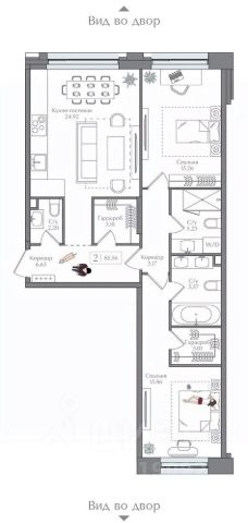 Просторные апартаменты с высоким потолком, высокие окна, без балкона.