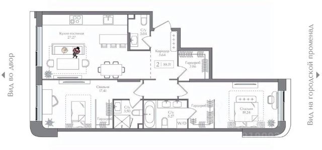 - Кухня с продуманной эргономикой: встроенная мойка и диспенсер. Встроенная техника Siemens/Bosch, включая духовку с функцией пара, посудомоечную машину, встраиваемую микроволновку ,встроенную стиральную машину с сушкой 8 кг.