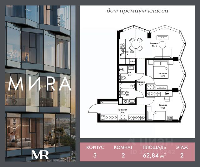 • ✓ В базе Циан 52 2-комнатных квартир на 2 этаже станция Ростокино (МЦК)