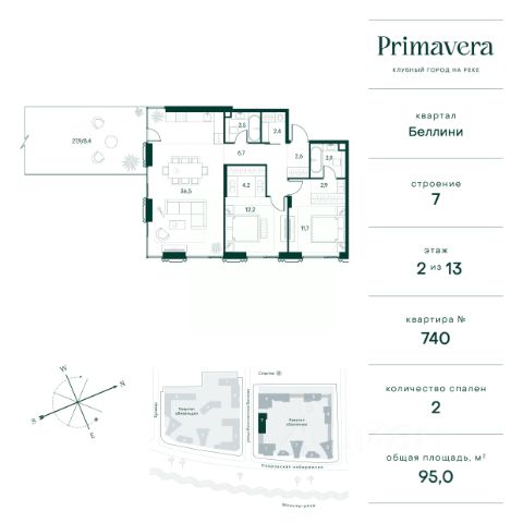 Цена указана с учётом скидки при 100%-й оплате, несубсидированной ипотеке, рассрочке (кроме программы "Рассрочка 0%"). Продается 2-комнатная квартира площадью 71.40 кв. м без отделки. Квартира находится на 2 этаже 20-этажного корпуса 5, в новом жилом комплексе бизнес-класса Level Войковская, расположенном рядом с живописным заповедником "Покровское-Стрешнево" (застройщик - компания Level Group/Левел групп). Прекрасная транспортная доступность - 7 мин. пешком до станции МЦК "Балтийская"; - 15 мин. пешком до станции метро "Войковская"; - 8 мин. на машине до ТТК; - 15 мин. на машине до центра Москвы; - 20 мин. на машине до Москва-Сити. Продуманный архитектурный проект - стильная архитектура от мастерской Фефелова В. В.; - панорамные виды на парки, Химкинское водохранилище и Останкинскую башню; - лобби с высотой потолков до 6,45 метров; - более 20 видов планировочных решений, включая редкие форматы квартир с террасой и увеличенной высотой потолков до 5,42 метров; - 2 варианта дизайнерской отделки в корпусе 4, предлагаются как дополнительная опция к отделке white box: стиль Modern в светлых холодных тонах и стиль Classic в нейтральной бежевой гамме. Квартиры в корпусах 3 и 5 сдаются без отделки. Расположение Level Войковская строится в престижном Северном округе Москвы. Развитая инфраструктура и живописная природа переплетаются в единый ансамбль, столь значимый для комфортной жизни. Войковский район окружают парки и набережные. В шаговой доступности - парк "Покровское-Стрешнево", не более 15-ти минут на велосипеде занимает путь до Тимирязевского парка и 9-ти минут до парка усадьбы Михалково. Рядом более 60 школ, 75 дошкольных учреждений, 17 государственных и 6 частных вузов, 25 супермаркетов, 4 торговых центра, среди которых ТЦ "Метрополис" и ТЦ "Авиапарк". Внутренняя инфраструктура На территории жилого комплекса предусмотрены коммерческие помещения: кафе, ресторан, пекарня и другие сервисы откроются на первых этажах корпусов. Для жителей будет доступен отапливаемый подземный паркинг на 244 машино-места с доступом с любого этажа на лифте. На территории паркинга будет расположено 125 кладовых помещений для хранения сезонного инвентаря. Лобби и благоустройство Дизайн лобби Level Войковская создан совместно с бюро BLANK. Это уютные гостиные, где хочется задержаться. Теплая цветовая гамма, ресепшен, зоны ожидания, лапомойки и гостевые санузлы - каждая деталь превращает лобби в комфортное продолжение вашего дома. 1,15 га площади в первых двух этапах строительства отведено под приватный внутренний двор, который спроектирован совместно с бюро "Правда". Детские площадки для всех возрастов, спортивные пространства для йоги, воркаута и петанка, уютные зоны для тихого отдыха или работы. Здесь утро начинается с вдохновения, а вечер наполнен приятными моментами. Лифты Комфортное перемещение внутри жилого комплекса будут обеспечивать надёжные лифты с доступом в паркинг с жилых этажей. В каждом корпусе предусмотрено по 3 грузопассажирских лифта.