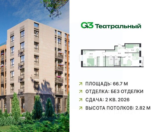 В современном квартале бизнес-класса G3 Театральный продаётся 2-комнатная квартира, общей площадью 32.3 кв.м, расположенная на 4 этаже (корпус 1, секция 6). "G3 Театральный" - это малоэтажный загородный smart business квартал, который возводится в Раменском городском округе Московской области, расположенный в окружении вековых сосен, с уникальным ландшафтным двором. Отличная транспортная доступность: - 500 метров от МЦД-3 "Ильинская"; - 8 км до выезда на Новорязанское шоссе; - 16 км от МКАД. Удачное расположение: - живая сосновая роща; - лесопарк "Треугольный" и Цаговский лес; - 12 минут на машине до городского парка; - 10 минут на машине до города Жуковский. Развивающаяся инфраструктура: На территории квартала появятся свой детский сад, спортплощадки, игровые зоны, кафе, аптеки, магазины и многое другое необходимое для жизни. В шаговой доступности находятся поликлиника, школы, детские сады, фитнес-клубы. В каждом подъезде устроены зоны для хранения колясок и велосипедов, розетки для электросамокатов, лапомойки для домашних питомцев. Ваши автомобили будут находиться на закрытой территории под круглосуточным видеонаблюдением. Паркинг с зарядкой для электромобилей. Квартиру можно приобрести по выгодным ипотечным условиям от крупнейших российских банков - Сбербанк, ВТБ, Росбанк. Ключи до сентября 2026 года.