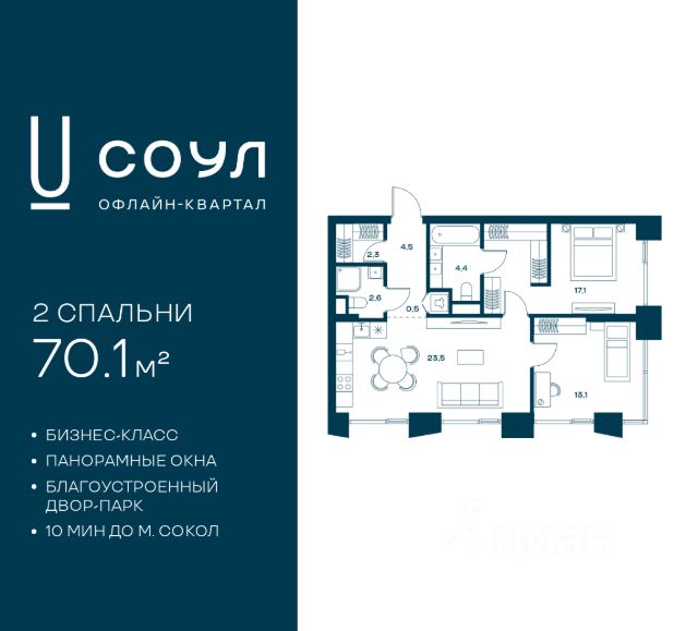 Цены указаны с условием 100% оплаты и стандартной ипотеки. Прямая продажа от застройщика! Продается 2-к. квартира номер 30 общей площадью 66.9 кв.м. на 4-м этаже 25 этажного дома, Корпус 3. С предчистовой отделкой. Проект бизнес-класса СОУЛ от девелопера FORMA. До метро Сокол 10 мин пешком. Архитектура от британского бюро SimpsonHaugh. Благоустройство дворов — Gillespies и GAFA. Территория состоит из культурного парка и приватных дворов. Озеленение в эстетике лесного оазиса. Насыщенное благоустройство: прогулочные тропинки, релакс-зоны, пряный и сенсорный сады, развивающие детские площадки и воркауты. В центре проекта объект культурного наследия — общественное пространство Изофабрика, построенная в 30-х годах по проекту архитектора Георгия Гольца. Здесь будут располагаться мастерские для взрослых и детей, выставочные залы, коворкинги, образовательный центр, рестораны и кафе. Квартиры с панорамными окнами, мастер-спальнями, гардеробными, классическими балконами и лоджиями, видовыми террасами. Высота потолков от 2,9 до 3,5 м. В проекте 2 детских сада на 100 и 200 малышей. Клубная гостиная, фитнес-комната, детская игровая комната, дизайнерские лобби, подземный паркинг и кладовые.