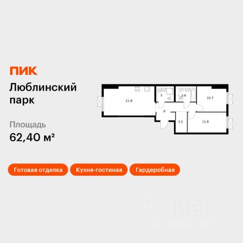 Продаётся 2-комн. квартира площадью 56,2 кв.м на 4 этаже 25 этажного дома (Корпус 18-20, Секция 1) проекта ПИК Люблинский парк. Светлый просторный подъезд на уровне земли, функциональная планировка, большие окна, c отделкой. Жилой квартал "Люблинский парк" расположен на юго-востоке Москвы, в шаговой доступности от станции "Братиславская". На метро до центра ехать всего 30 минут. Также недалеко станция МЦД "Перерва", от которой можно уехать в Москву или в область. В проекте 54 жилых корпуса, три школы, семь детских садов, поликлиника. В районе есть все условия для комфортной жизни: торговые центры, школы, детские сады, поликлиники и спортивные центры. Рядом находятся усадьба Люблино, скверы и парки. Различные магазины, кафе и другие сервисы откроются на первых этажах, а на подземных будут паркинги с удобной навигацией. В зелёных дворах без автомобилей мы построим детские площадки и места для отдыха. А ещё "Люблинский парк" стал третьим проектом ПИК с большой игровой площадкой PlayHub, которая уже открылась между 1-м и 2-м блоками на безопасном расстоянии от дороги. Новое детское пространство "Остров" воплощает идею бесконечной игры. Ландшафт площадки — это ещё и игровой элемент, который помогает детям придумывать множество самых разнообразных игр. Здесь интересно детям разного возраста — от малышей до подростков. Жителям квартала Люблинский парк и их друзьям доступен проект ПИКСПОРТ — это бесплатные занятия с профессиональными тренерами. Тренировки по разным направлениям, например йога, фитнес, бег, воркаут, проходят как в группе на улице рядом с домом, так и онлайн. Артикул 604629 (Застройщик ООО СЗ "Люблино Девелопмент")
