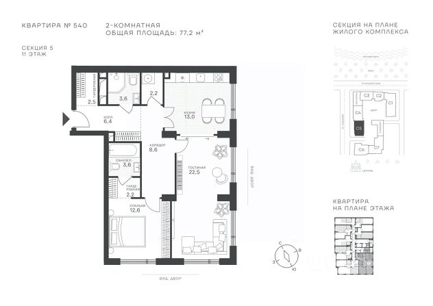 Главная особенность квартиры: Квартира расположена в 7-этажном малонаселенном корпусе с видом на закрытую обустроенную территорию дома. В нашей секции мало квартир, всегда свободные лифты и минимум времени ожидания.