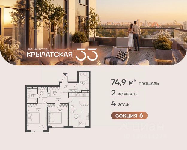 Прогнозный рост стоимости +50% в течение 2,5 лет.* Река. Парк. Сити. Готовый дом в идеальном месте. Продается 2-комнатная квартира на 4 этаже с панорамным остеклением и видом на Москву-реку. Береговой — квартал курорт в центре столицы. Пешеходная набережная начинается от дома: никаких дорог между вами и рекой. Уникальное сочетание природы парка Фили и ритма Сити. Инвестиционный потенциал — в развитии территории: продление набережной, открытие детского образовательного кластера, премиального фитнеса и гастрономических пространств. Ввод всех корпусов жилого квартала поддержит рост стоимости. Начните действовать выгодно уже сегодня. Ключи от нового образа жизни в Береговом: 12 террас на крышах — виды на Москву с высоты птичьего полета Лобби с камином, переговорной и консьерж-сервисом Большой премиум-фитнес (4700м2) с бассейном, термами и спа-комплексом Детство на берегу Москвы-реки — для маленьких резидентов будут построены школа и детский сад на 1000 и 300 мест Гастрономическая набережная: рестораны и премиум-сервисы откроются на первых этажах Причал "Береговой" рядом с домом — путешествуйте по городу, пока другие стоят в пробках Безопасность и уединение: контроль доступа, видеонаблюдение и круглосуточная диспетчерская Двухуровневый подземный паркинг и кладовые. Безупречная квартира для жизни: Пространство света и воздуха: панорамные окна и высокие потолки 3.2 м Технологии: центральное кондиционирование и роботизированная система очистки фасадов — вид из окна всегда будет идеальным Совершенство планировки: просторная кухня-гостиная и максимум полезной площади Квартира без отделки — возможность создать уникальный интерьер в вашем уникальном стиле. Или выбирайте свою версию идеального дома в коллекции планировок: С изолированными спальнями Мастер-спальнями с гардеробными и ванными Видовые ванные комнаты Функциональные постирочные Эксклюзивные лоты: Пентахусы с приватными террасами Двухуровневые пентхаусы Локация, о которой мечтают: 10 минут до Сити — и вы в эпицентре деловой жизни. Две станции метро в пешей доступности — когда каждая минута на счету. Утром — пробежка по парку Фили, вечером — прогулка на велосипеде вдоль реки, выходные — водный спорт в Крылатском. Речные трамвайчики вместо такси, зеленые парки и благоприятная экология — привилегии престижного ЗАО Москвы. В 2025 году открыт мост Академика Королева, что обеспечило дополнительный выезд на ТТК и Звенигородское шоссе. Условия покупки: выгодные программы покупки от застройщика, специальные условия при полной оплате. Оставляйте заявку на персональную презентацию в шоу-руме. *Не является индивидуальной инвестиционной рекомендацией.
