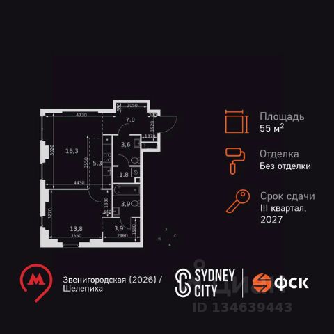 10 минут от Москва-Сити В продаже квартира площадью 59.95 м² без отделки на 4 этаже 46 этажного дома. Квартира расположена в корпусе Leo. JOIS это премиальный жилой комплекс от девелопера MR в районе Хорошёво-Мнёвники. Он включает несколько эффектных небоскрёбов высотой 47-56 этажей, эксклюзивные форматы квартир с панорамным остеклением, подземный двухуровневый паркинг на 239 м/м, собственную приватную инфраструктуру, закрытый ландшафтный парк 2,3 Га с функциональным зонированием и охраняемой территорией. Над проектом работали лучшие команды международных агентств с многолетним опытом: Genpro, S&P, iLight International и другие. Расположение Пешком: - 5 мин. ст. МЦК "Хорошёво"; - 15 мин. ст. м. "Народное ополчение"; - 10 мин. ст. метро "Звенигородская" с 2027 года; - 20 мин. причал "Карамышевский". На автомобиле: - 3 мин. до Звенигородского шоссе; - 5 мин. до ТТК: - 8 мин. до Серебряного бора и Строгинского затона - 10 мин. до ММДЦ "Москва-Сити"; - 40 мин. до аэропорта "Шереметьево"; Благоустройство - собственный ландшафтный парк 2,3 Га; - парк скульптур от Cosmoscow; - консьерж-сервис 24/7; - сервисный лифт и вход; - игровые и спортивные площадки; - коворкинг с библиотекой; - лаунж-зона с камином; - игровые комнаты для детей и клуб для подростков с оборудованием для видеоигр; - спортивная студия для индивидуальных тренировок; - гостиная с мини-кухней; - зоны для выгула собак; - подогрев пешеходных дорожек в зимний период; - автополив зелёных насаждений; - премиальные рестораны, кафе, химчистки, аптеки и супермаркеты. Окружение - 4 парка: Покровское-Стрешнево, Филёвский парк, Серебряный бор и Берёзовая роща; - 15 общеобразовательных заведений, в том числе две школы из самых лучших в Москве: государственная школа "Интеграл" и частная "Хорошкола"; - спортивное сооружение "ВЭБ Арена", домашний стадион ФК ЦСКА; - крупнейший в Европе торгово-развлекательный центр "Авиапарк".