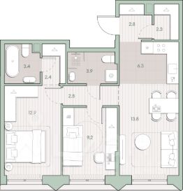 О квартире Продаётся 2-комнатная квартира общей площадью 53.4 кв.м. без отделки. Квартира расположена на 4 этаже корпуса 5.5 в жилом комплексе бизнес-класса "Среда на Лобачевского" в пешей доступности от метро "Аминьевская". О жилом комплексе "Среда на Лобачевского" полностью соответствует критериям современного жилого пространства. Взяв за основу рациональный подход, мы гармонично соединили дизайн, актуальные тренды и функциональность. Продуманный современный экстерьер и функциональные планировки внутри, приватные пространства и разнообразные досуговые зоны для каждого члена семьи — все это "Среда на Лобачевского". Инфраструктура Район отлично развит и наполнен жизнью, здесь уже есть вся необходимая инфраструктура — детские сады, школы, медучреждения, торговые центры, благоустроены парки для прогулок и отдыха, удобен и легкодоступен городской транспорт. Рядом расположены учебные корпуса крупных университетов — МГУ, МГИМО и РАНХиГС. Школы и детские сады в районе занимают высокие позиции в городских рейтингах, поэтому вам не придется беспокоиться о качестве образования детей. Как и об отдыхе: поблизости расположены живописные пруды, реки и парки. Это Парк Олимпийской деревни, Парк имени 50-летия Октября, Мещерский парк и Очаковские пруды. Теперь поставить галочки в еженедельном чек-листе "спорт-прогулки-встречи с друзьями" можно, не покидая любимый район. Особенности Особое внимание в проекте уделяется созданию функциональных пространств не только внутри дома, но и за его пределами. В ландшафтном парке "Среды на Лобачевского" расположены крытые зоны для спокойного времяпровождения, места для активного отдыха и спорта, коворкинг, соседский комьюнити-центр, водные объекты. —Ландшафтный парк во дворе. —Водный сад с зонами отдыха. —Зоны коворкинга. —Дизайнерские гранд-лобби. —Бесключевой доступ. —Подземный паркинг.