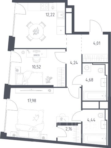 Продаётся 2-комнатная квартира в строящемся доме (Корпус К5), срок сдачи: IV-кв. 2028, общей площадью 68.84 кв.м., на 4 этаже. Жилой комплекс бизнес-класса "Квартал на воде" — пример минималистичной архитектуры от бюро Kleinewelt Architekten. 4 урбан-блока находятся на первой береговой линии Москвы-реки, еще 3 корпуса бизнес-класса — на второй линии. Наслаждайтесь видами, которые захватывают дух — и ежедневными прогулками по собственной благоустроенной набережной. "Квартал на воде" находится в районе Печатники, в 5 минутах ходьбы от МЦД-2 "Перерва". В 2025 году рядом откроется станция МЦД-2 "Курьяново". Вокруг — живописные места для погружения в историю: музей-усадьба "Люблино", музеи-заповедники "Коломенское" и "Царицыно". Играйте в теннис и катайтесь на речных трамваях в парке "Печатники": прогулка до парка займет всего 20 минут. Специально для резидентов — своя образовательная инфраструктура: детский сад на 150 мест и школа на 775 мест. На первых этажах жилых домов откроются фитнес-студия, салоны красоты, кафе и магазины. В пешей доступности — 8 лицеев и школ, 2 высших учебных заведения, 2 больницы. Приватный двор-парк закрыт от машин. Припарковать машину можно в плоскостном или многоуровневом подземном паркинге. Проводите время в в пространстве для тихого отдыха, катайтесь на велосипедах вдоль набережной, тренируйтесь в спортхабе. На игровых площадках — развлечения для детей любого возраста. Владельцы собак смогут выгуливать и дрессировать питомцев в догхабе. Москва-река вдохновила архитекторов на создание дизайн-кода "Пульс воды". Серые оттенки фасадов, сочетание стемалита и прозрачного остекления, дизайн элементов благоустройства — каждая деталь соответствует продуманной концепции. Для вашего удобства на входе нет ступеней и порогов. Вас встречает стойка ресепшн: консьерж-сервис решает любые вопросы — от заказа такси до вызова мастеров. Отдыхайте в лаунж-зоне с элегантным дизайном и мягкой мебелью. Из лобби есть выход на общественную террасу. В колясочных на первом этаже удобно оставлять не только коляску, но и велосипед. На техническом этаже предусмотрены индивидуальные кладовые. Мы разработали планировочные решения от студий площадью 22,8 м² до четырехкомнатных квартир евроформата площадью 77,1 м². Большинство вариантов — с великолепным видом на Москву-реку и Дальний остров. Все квартиры — с отделкой в светлых тонах.