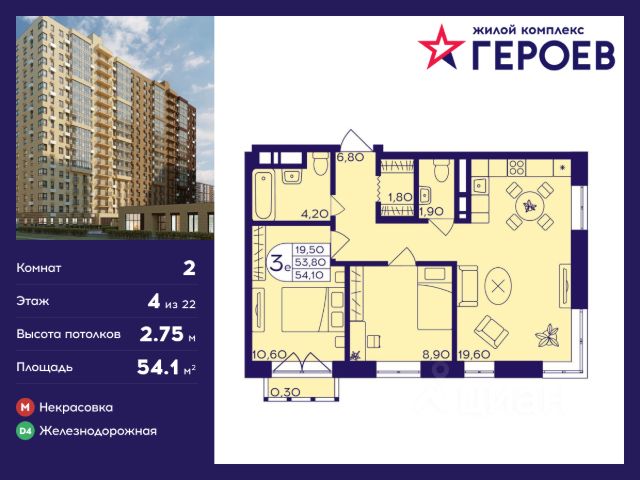 Продаётся 2-комнатная квартира 55.10 кв. м. в жилом комплексе "Героев" в Балашихе, Железнодорожный. Квартира расположена на 4 этаже 413 корпуса. В наличии квартиры с отделкой. Всего 40 минут до центра Москвы. При покупке квартиры в сданном доме ключи выдаются сразу! Жилой квартал "Героев" - это уютный проект для семей с детьми. В квартале созданы все условия для досуга всех возрастов: игровые и спортивные площадки, места для отдыха и прогулочные зоны. За 15 минут можно дойти от дома до Ольгинского лесопарка, популярного места для отдыха на свежем воздухе. На территории жилого комплекса уже открыт детский сад на 250 мест и началось строительство еще одного - для 220 малышей, а также школы для 1320 учеников. Рядом работают магазины, кафе, супермаркеты, пункты выдачи. Преимущества: • В уютных светлых квартирах с просторными кухнями-гостиными удобно встречать гостей и проводить время наедине друг с другом. • Благодаря увеличенному остеклению в комнатах много света. • Квартиры продаются с отделкой, можно заселяться сразу после получения ключей.