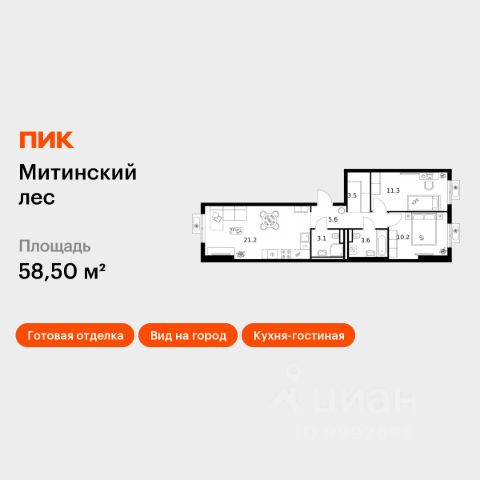 Продаётся 2-комн. квартира площадью 51,2 кв.м на 4 этаже 27 этажного дома (Корпус 14, Секция 4) проекта ПИК Митинский лес. Светлый просторный подъезд на уровне земли, функциональная планировка, большие окна, c отделкой. Жилой квартал "Митинский лес" строится в Митино — районе, известном хорошей экологией. По соседству с домами протянулся большой парк. За 20 минут отсюда можно дойти до метро "Пятницкое шоссе", а за 30 — доехать на автомобиле до центра Москвы. В проекте жилые дома, 2 детских сада на 150 и 235 мест, школа на 1100 мест и подземные паркинги на 525 машиномест. В зелёных дворах-парках будут места для отдыха, современные детские и спортивные площадки. На первых этажах откроются магазины, кафе и другие сервисы — за кофе и свежим хлебом к завтраку можно будет просто спуститься на лифте. Рядом с жилым кварталом — хорошо развитый район. За 5 минут можно доехать до школ, детских садов, торговых центров, кафе и спортзалов. А в трёх минутах ходьбы находится Митинский парк, где приятно гулять и заниматься спортом. Артикул 860169 (Застройщик АО СЗ "ПФК")