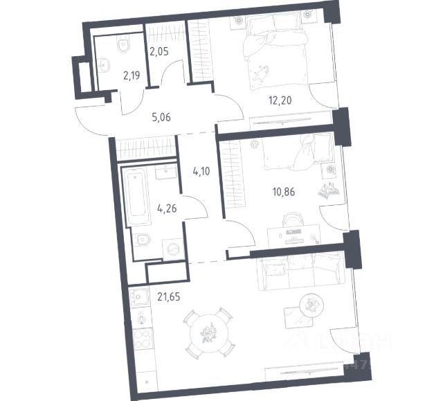 В северной части района Печатники продается 2-комнатный апартамент площадью 45.20 кв.м без отделки. Апартаменты расположены на 4 этаже 23-этажного корпуса 13 в жилом комплексе комфорт-класса Level Южнопортовая (компания Level Group/Левел групп). Отличная транспортная доступность: - 10 мин. пешком до станции метро "Кожуховская"; - 20 мин. пешком до станции МЦК "Дубровка"; - 3 мин. на авто до ТТК; - 13 мин. на авто до Садового кольца; - 15 мин. на авто до Бульварного кольца. Продуманный архитектурный проект: - авторская архитектура от бюро СПИЧ; - уникальные виды на реку, парки и достопримечательности города; - высота потолков в квартирах до 6 м; - окна высотой до 1,87 м с высоким коэффициентом сопротивления теплоотдаче. Расположение: Level Южнопортовая строится в северной части района Печатники - самой приближенной к центру. Здесь будет сформирован новый район "Южный порт", где построят крупный жилой и общественно-деловой центр, аналогичный Москва-Сити. В течение 10-12 лет в этом месте появятся не только жилые дома, но и развитая инфраструктура для жизни и работы. А еще совсем рядом находится набережная Москвы-реки, где планируется построить причалы для речных трамвайчиков и канатную дорогу. Уже сейчас вокруг жилого комплекса работают десятки магазинов и торговых центров, рядом расположено 6 парков, среди которых музей-заповедник "Коломенское". В 10 минутах пешком - 2 муниципальных и 2 частных детских сада, 7 общеобразовательных школ. Внутренняя инфраструктура: Для отдыха жителей в каждом корпусе предусмотрено лобби, оснащенное местами для отдыха, гостевыми санузлами и лапомойками, а в отдельных корпусах - камином. За счёт больших окон и высоких потолков пространства будут наполнены воздухом и светом. На первых этажах жилого комплекса откроются магазины, салоны красоты, фитнес-центр. Для детей строятся собственные детский сад и школа. Благоустройство: Внутренний двор комплекса разработан совместно с бюро GAFA. Основная идея - создать аналог Центрального парка в Нью-Йорке, гармонично сочетая высотные здания и большое изолированное парковое пространство. Вся площадь двора-парка будет огорожена и составит более 2 га, из которых 45% - озеленение. Одним из самых важных ландшафтных элементов здесь станет небольшая речка, наполняющаяся во время дождя. Вокруг неё появится сеть из островов, внутри которых расположатся тематические зоны спорта и отдыха. Технологии и инженерия: - автоматическая передача в управляющую компанию показаний квартирных счётчиков; - телефонная связь, телевидение и интернет на базе оптической мультисервисной сети; - гостевой Wi-Fi в лобби и на территории двора; - единый ключ доступа для входа на территорию комплекса.