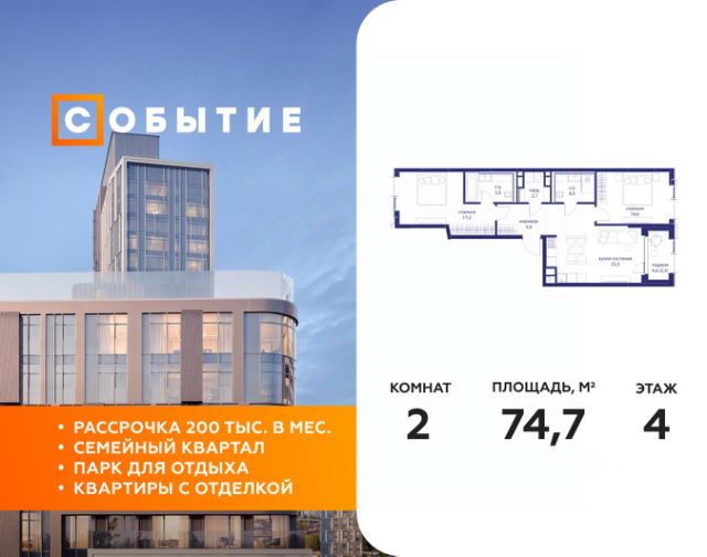 Продаётся 2-комнатная квартира в строящемся доме (Корпус 1), срок сдачи: IV-кв. 2027, общей площадью 71.02 кв.м., на 4 этаже. NOVA - Первый архитектурный проект в премиальной линейке Samolet Select - совершенной коллекции комфорта, статуса и преимуществ.