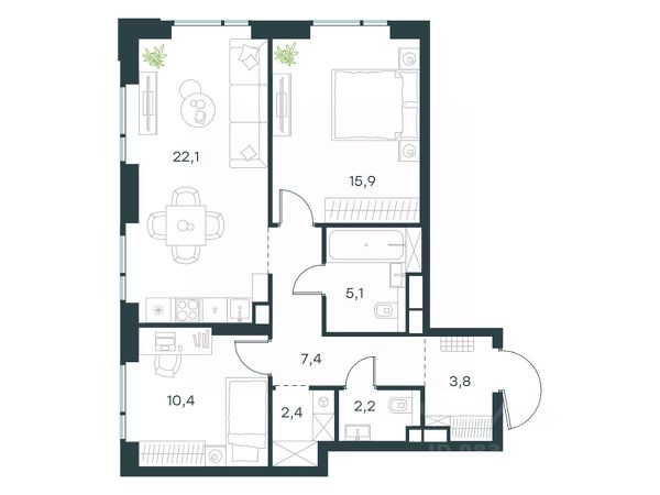 Цена указана с учётом скидки при 100%-й оплате, несубсидированной ипотеке, рассрочке (кроме программы "Рассрочка 0%"). Продается 2-комнатная квартира площадью 62.10 кв. м с отделкой. Квартира находится на 4 этаже 26-этажного корпуса 4, в новом жилом комплексе бизнес-класса Level Войковская, расположенном рядом с живописным заповедником "Покровское-Стрешнево" (застройщик - компания Level Group/Левел групп). Прекрасная транспортная доступность - 7 мин. пешком до станции МЦК "Балтийская"; - 15 мин. пешком до станции метро "Войковская"; - 8 мин. на машине до ТТК; - 15 мин. на машине до центра Москвы; - 20 мин. на машине до Москва-Сити. Продуманный архитектурный проект - стильная архитектура от мастерской Фефелова В. В.; - панорамные виды на парки, Химкинское водохранилище и Останкинскую башню; - лобби с высотой потолков до 6,45 метров; - более 20 видов планировочных решений, включая редкие форматы квартир с террасой и увеличенной высотой потолков до 5,42 метров; - 2 варианта дизайнерской отделки в корпусе 4, предлагаются как дополнительная опция к отделке white box: стиль Modern в светлых холодных тонах и стиль Classic в нейтральной бежевой гамме. Квартиры в корпусах 3 и 5 сдаются без отделки. Расположение Level Войковская строится в престижном Северном округе Москвы. Развитая инфраструктура и живописная природа переплетаются в единый ансамбль, столь значимый для комфортной жизни. Войковский район окружают парки и набережные. В шаговой доступности - парк "Покровское-Стрешнево", не более 15-ти минут на велосипеде занимает путь до Тимирязевского парка и 9-ти минут до парка усадьбы Михалково. Рядом более 60 школ, 75 дошкольных учреждений, 17 государственных и 6 частных вузов, 25 супермаркетов, 4 торговых центра, среди которых ТЦ "Метрополис" и ТЦ "Авиапарк". Внутренняя инфраструктура На территории жилого комплекса предусмотрены коммерческие помещения: кафе, ресторан, пекарня и другие сервисы откроются на первых этажах корпусов. Для жителей будет доступен отапливаемый подземный паркинг на 244 машино-места с доступом с любого этажа на лифте. На территории паркинга будет расположено 125 кладовых помещений для хранения сезонного инвентаря. Лобби и благоустройство Дизайн лобби Level Войковская создан совместно с бюро BLANK. Это уютные гостиные, где хочется задержаться. Теплая цветовая гамма, ресепшен, зоны ожидания, лапомойки и гостевые санузлы - каждая деталь превращает лобби в комфортное продолжение вашего дома. 1,15 га площади в первых двух этапах строительства отведено под приватный внутренний двор, который спроектирован совместно с бюро "Правда". Детские площадки для всех возрастов, спортивные пространства для йоги, воркаута и петанка, уютные зоны для тихого отдыха или работы. Здесь утро начинается с вдохновения, а вечер наполнен приятными моментами. Лифты Комфортное перемещение внутри жилого комплекса будут обеспечивать надёжные лифты с доступом в паркинг с жилых этажей. В каждом корпусе предусмотрено по 3 грузопассажирских лифта.