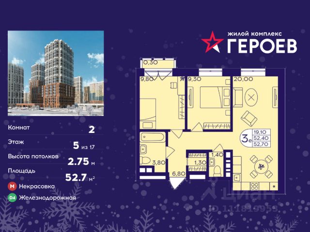 Продаётся 2-комнатная квартира 53.00 кв. м. в жилом комплексе "Героев" в Балашихе, Железнодорожный. Квартира расположена на 5 этаже 410 корпуса. В наличии квартиры с отделкой. Всего 40 минут до центра Москвы. При покупке квартиры в сданном доме ключи выдаются сразу! Жилой квартал "Героев" - это уютный проект для семей с детьми. В квартале созданы все условия для досуга всех возрастов: игровые и спортивные площадки, места для отдыха и прогулочные зоны. За 15 минут можно дойти от дома до Ольгинского лесопарка, популярного места для отдыха на свежем воздухе. На территории жилого комплекса уже открыт детский сад на 250 мест и началось строительство еще одного - для 220 малышей, а также школы для 1320 учеников. Рядом работают магазины, кафе, супермаркеты, пункты выдачи. Преимущества: • В уютных светлых квартирах с просторными кухнями-гостиными удобно встречать гостей и проводить время наедине друг с другом. • Благодаря увеличенному остеклению в комнатах много света. • Квартиры продаются с отделкой, можно заселяться сразу после получения ключей.