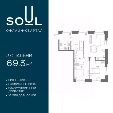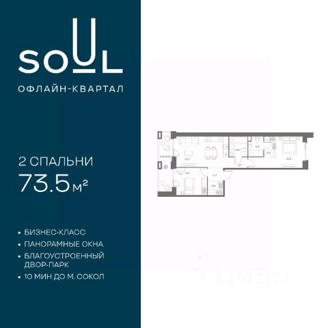 Цены указаны с условием 100% оплаты и стандартной ипотеки. Прямая продажа от застройщика! Продается 2-к. квартира номер 191 общей площадью 68.3 кв.м. на 5-м этаже 7 этажного дома, корпус UNIQUE (премиум-класс). Без отделки. Проект бизнес-класса SOUL от девелопера FORMA. До метро Сокол 10 мин пешком. Архитектура от британского бюро SimpsonHaugh. Благоустройство дворов — Gillespies и GAFA. Территория состоит из культурного парка и приватных дворов. Озеленение в эстетике лесного оазиса. Насыщенное благоустройство: прогулочные тропинки, релакс-зоны, пряный и сенсорный сады, развивающие детские площадки и воркауты. В центре проекта объект культурного наследия — общественное пространство Изофабрика, построенная в 30-х годах по проекту архитектора Георгия Гольца. Здесь будут располагаться мастерские для взрослых и детей, выставочные залы, коворкинги, образовательный центр, рестораны и кафе. Квартиры с панорамными окнами, мастер-спальнями, гардеробными, классическими балконами и лоджиями, видовыми террасами. Высота потолков от 2,9 до 3,5 м. В проекте 2 детских сада на 100 и 200 малышей. Клубная гостиная, фитнес-рум, детская игровая комната, дизайнерские лобби, подземный паркинг и келлеры.