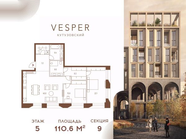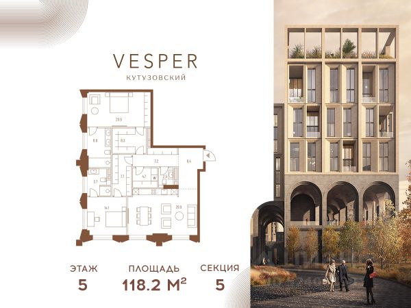 Продается квартира 2-спальнями без отделки, в корпусе 10.2 общей площадью 119,3 кв.м. на 5 этаже. Знаковый проект для ценителей комфортной городской среды от Vesper. Квартал площадью 3,7 га расположен на Кутузовском проспекте и воплощает новую концепцию идеально сбалансированного места для жизни. Благодаря удачному расположению и развитой транспортной инфраструктуре отсюда одинаково быстро добираться как до Кремля и ММДЦ "Москва-Сити", так и до Рублево-Успенского шоссе. Планировочные решения проекта Vesper Кутузовский включают широкую линейку жилых форматов и подойдут для самых взыскательных резидентов: помимо базовых вариантов квартир доступны эксклюзивные лоты — пентхаусы с террасами и квартиры с патио. Продуманная приватная инфраструктура, собственный ландшафтный парк, близость магазинов и ресторанов делают Vesper Кутузовский достойным выбором для самых взыскательных клиентов: как для тех, кто любит уединение, так и для резидентов, которые стремятся быть в центре событий. Концепция жилого квартала разработана ODA Architecture. Разная высотность 10 строений, плавные линии и главный паттерн из арок, размер которых меняется в зависимости от дома и этажа, создают визуальный ритм квартала и делают его легким и элегантным, наполненным солнечным светом и воздухом.