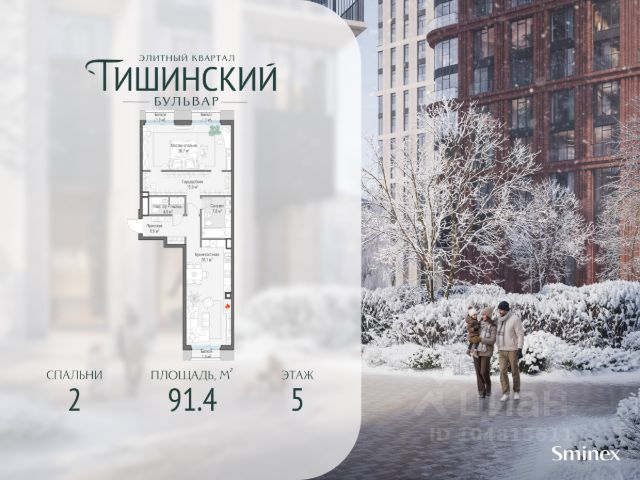 В продаже 2-комнатная квартира квартира в элитном квартале "Тишинский бульвар". Общая площадь квартиры - 96.50 кв.м. Этаж 5 из 7. Корпус Ивовый 3. "Тишинский бульвар" - тихий зелёный элитный квартал на Тишинке, в престижном и комфортном районе центра Москвы. В нём создан уникальный для элитного дома прогулочный бульвар в своём огромном парке 1,9 га. В парке оборудованы зоны для активного и тихого отдыха, крытые галереи, приватные зелёные комнаты, многофункциональная спортивная площадка, воркаут-зона, детская площадка, сухой фонтан, ручей. В пешей доступности Римско-католический кафедральный собор. Всего в полутора километрах от квартала находятся Патриаршие пруды - излюбленное место для летних прогулок, воскресных бранчей и романтических ужинов. Белая площадь расположена ещё ближе - на расстоянии 1,2 километра. Это точка концентрации деловой жизни и модных ресторанов. В "Тишинский бульваре" только для жителей и их гостей создан уникальный для элитного дома прогулочный бульвар в собственном огромном парке площадью 2,1 га, который занимает 70% территории квартала. Бульвар проходит через весь квартал и объединяет в общее пространство три двора: Кленовый, Рябиновый и Ивовый. В парке созданы крытые галереи и приватные зелёные комнаты для отдыха и медитаций в любую погоду. Насыщенное озеленение многолетними растениями с разными периодами цветения сохраняет территорию квартала красивой круглый год. В квартале насыщенная инфраструктура только для жителей, включая Clubhouse. Здесь оборудованы пространства для здорового образа жизни по стандарту FIT LAB: в парке - многофункциональная спортивная площадка, воркаут-зона, место для занятий йогой и медитации; бесплатный фитнес-клуб с бассейном. Для маленьких жителей доступны детская площадка и игровая комната по стандарту KIDS LAB. Дома оснащены самыми полными и лучшими системами.