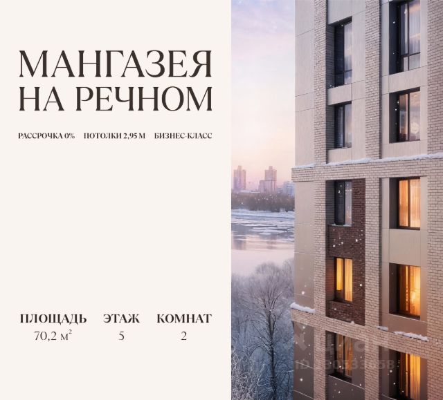 В продаже 2-к квартира площадью 70.2 м2. Функциональная планировка, кухня-гостиная, просторные санузел и гардеробная. Квартира расположена на 5-м этаже 24-этажного дома. Условия покупки: - Семейная ипотека от 3,5% на весь срок - Ипотека 0,11% на первый год - Рассрочка без процентов - Trade-in с проживанием на время строительства дома "Мангазея на Речном" расположена рядом с набережной, парками и территорией Северного речного вокзала. Первая очередь проекта два дома 12 и 24 этажа с приватным двором, ландшафтным благоустройством и инфраструктурой только для резидентов: кинозал, коворкинг, переговорные, зоны отдыха и комнаты для занятия фитнесом. Инфраструктура: - Школа на 1000 мест и детский сад - Дом Wellness со СПА-центром, фитнесом и массажными кабинетами и два бассейна, один из них под открытым небом - Два бассейна, один из них под открытым небом - Прогулочная набережная протяженностью 3,2 км с террасами - Зона воркаута и детские площадки - Ретейл, кафе, рестораны и бутики на первых этажах - Причалы для остановки яхт и небольших катеров Транспортная доступность: - 10 минут пешком до м. Речной вокзал - 15 минут пешком до м. Беломорская - 15 минут на машине до Белорусского вокзала - 17 минут на машине до Садового Кольца В первых корпусах "Мангазеи на Речном" представлены квартиры бизнес-класса с мастер-спальнями, террасами и видами на парк. Эксклюзивные форматы лоты с увеличенной высотой потолков и собственными выходом на благоустроенную территорию.