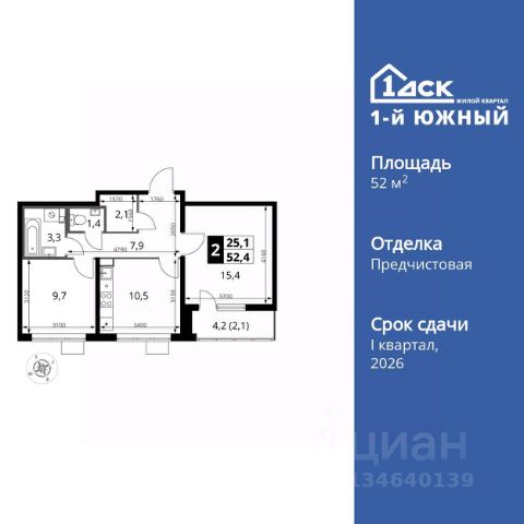 ТОЛЬКО 4 ДНЯ ДО 10.02 • Дополнительная скидка 10% • Ставка 10% по стандартной ипотеке для всех без наценок • Ставка 3,5% по семейной ипотеке Успейте купить выгодно! Прямая продажа от застройщика! Жилой Комплекс класса Комфорт Плюс. Продаётся 2-к квартира номер 214 общей площадью 52.2 кв.м. на 5-м этаже 25 этажного здания. Отделка Whitebox. Цена с учётом скидки. Особенности квартиры: - МЦД-5 в пешей доступности - Квартал с южным садом - Свои 3 детских сада и 2 большие школы - Просторная спальня, в которой можно разместить большую кровать. - Линейная планировка - максимальная функциональность и удобство. - Гостевой санузел - комфорт и удобство для ваших гостей. - Раздельный санузел - больше удобства для всех членов семьи. - Просторная мягкая зона - комфорт и уют для отдыха всей семьи. - Возможность добавить спальное место - дополнительный комфорт для гостей. - Гардеробная - удобство для хранения и организации вещей. - Просторная лоджия - идеальное место для уютных вечеров. Квартира с предчистовой отделкой (White box). Вам не придется заниматься черновыми и трудоёмкими работы, а чистовую отделку и дизайн - сделайте на свой вкус. Информация о комплексе: Одно из преимуществ проектов 1- ДСК большие застекленные лоджии. Другое преимущество честный евро-формат. Во всем проекте предусмотрена система Умный дом. В состав устанавливаемого пакета устройств входит: WiFi реле для управления группами потребителей, беспроводной кран перекрытия с эл. приводом, беспроводной сенсор протечки, Яндекс Станция Мини. Его расположение можно назвать удачным за счет транспортной доступности и близости к природным объектам. По соседству лес, а в каждом дворе плодовые деревья. Весной квартал окутывает бело-розовое облако: это цветут яблони, груши, сливы. К августу в воздух наполняется ароматом созревших плодов. Зимой среди покрытых инеем деревьев протянулась лыжня. Транспортная доступность: - Общественный транспорт: Действующая ж/д станция Булатниково (в перспективе будущая МДЦ D5) в пешей доступности, всего 10-12 минут. - Личный автотранспорт: Удобный выезд на трассу М4-Дон в сторону Москвы и области 850 м, до МКАД - 1 км Внутренняя инфраструктура: Красивые продуманные подъезды - еще одно преимущество проекта 1-й Южный. Вход в сквозные подъезды есть и с улицы, и со двора. Благодаря сплошному остеклению в них всегда светло и уютно. Подъезды расположены на уровне земли, поэтому и молодым родителям с коляской, и жильцам с ограниченными возможностями вход и выход неудобств не доставят. В помещении предусмотрено место под стойку ресепшен с выводом инженерных сетей. Если жильцы решат на общем собрании, что необходим охранник или консьерж, организовать для них рабочее место можно быстро и с минимальными затратами. В подъездах предусмотрены уборные для детей и взрослых. Колясочные в каждом подъезде позволяют поддерживать порядок и чистоту на этажах. На случай прогулки с четвероногим питомцем в непогоду в подъездах устроены лапомойки.
