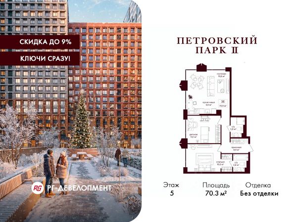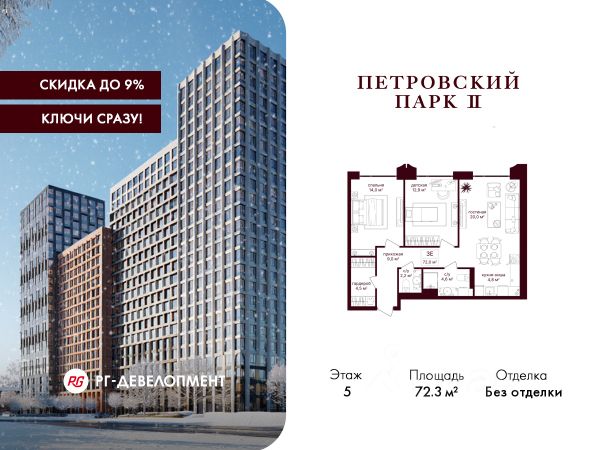 Рассрочка 0%. Первый платёж 30%, второй - не позднее 31.12.2026 г. Продаётся 2-комнатная квартира 64.2 кв.м. в ЖК "Петровский парк II" на 5-м этаже 21 этажного дома. ЖК "Петровский парк II" — жилой комплекс в Савёловском районе, где город ощущается иначе. Здесь история и масштаб Москвы не давят, а задают фон для спокойной, уверенной жизни рядом с центром. Это место, где статус читается не в громких формулировках, а в окружении, архитектуре и ощущении пространства. Коротко о важном: • Район с глубоким историческим контекстом и парковым окружением; • 5 минут пешком до метро "Динамо", рядом с деловой и культурной жизнью города; • Редкое сочетание: энергия мегаполиса и тишина зелёных аллей; • Архитектура от бюро Syntaxis с пластикой форм и индивидуальным характером фасадов; • Панорамные виды на город и зелёные массивы Петровского и Тимирязевского парков; • Закрытый двор без машин, вдохновлённый эстетикой дворцовых садов; • Просторные гранд-лобби с высокими потолками и выверенной, респектабельной эстетикой; • Частный детский сад во дворе; • Подземный паркинг и кладовые; • РГ-Девелопмент - ТОП-20 крупнейших застройщиков Москвы. Расположение комплекса формирует особое ощущение свободы выбора. Утром - прогулка по тенистым аллеям Петровского парка, днём - работа и встречи в деловых кластерах поблизости, вечером - культурные события, рестораны и городские пространства в нескольких минутах пути. Здесь расстояния измеряются не километрами, а шагами от дома. Архитектура "Петровского парка II" задумана как современная доминанта района и одновременно как уважительный диалог с исторической средой. Асимметричные объёмы, волнообразные элементы и игра света и тени создают выразительный, но сдержанный силуэт. Архитектура наполнена воздухом и визуальным ритмом, оставаясь спокойной и уверенной. Общественные пространства продолжают эту логику. Два гранд-лобби с высокими потолками и благородной цветовой палитрой воспринимаются как пространства, где хочется замедлиться: встретить гостей, перевести дыхание после дня или просто почувствовать уровень среды, в которой вы живёте. Внутренний двор комплекса - это отдельный мир, закрытый от машин и городского шума. Ландшафтный дизайн отсылает к регулярным дворцовым садам: геометрия аллей, зелёные "кабинеты", цветники и камерные зоны отдыха создают разные сценарии для повседневной жизни. Здесь органично соседствуют детские игровые пространства, плейхаб, спортивные зоны и тихие места для отдыха. На территории комплекса расположены магазины, кафе и рестораны, а также частный детский сад, встроенный в общую структуру двора. Подземный паркинг и кладовые поддерживают ощущение порядка и цельности пространства.