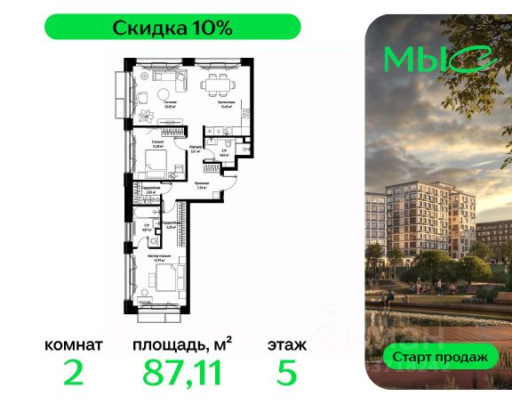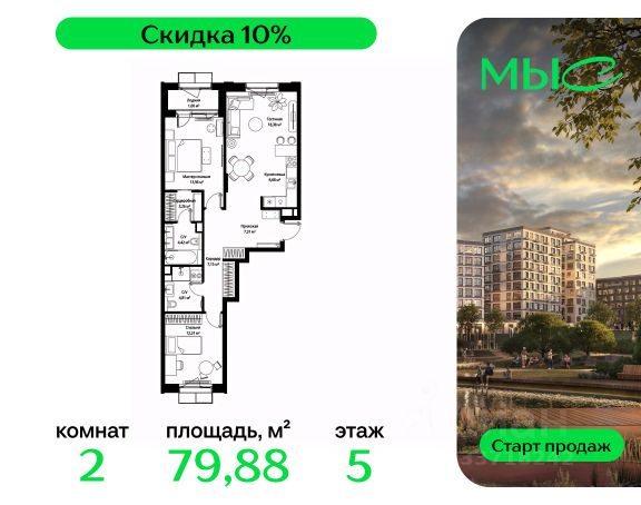 Предлагается 2-комнатная квартира комфорт-класса 59,73 кв.м в корпусе 9 на 5 этаже, в ЖК "Квартал Западный" Квартира без отделки. Доступность опции "отделка" и возможность комплектации мебелью и декором уточняйте у застройщика. Приобрести квартиру возможно по специальным акциям от застройщика, с текущими условиями акций можно ознакомиться в блоке "Акций". Цена динамическая и может отличаться, уточняйте актуальность у застройщика. Жилой комплекс в окружении лесопарков и рядом с рекой. До станции МЦД-4 "Санино" можно дойти пешком за 7 минут, а на территории проекта появится транспортно-пересадочный узел с торговым центром. Для жителей построят школу, 2 детсада, в одном из которых будут развивающие кабинеты-трансформеры. Дворы — тихое зеленое пространство без машин. В проекте появится собственный ландшафтный парк с благоустроенной набережной и центральная площадь, на которой будут проводиться различные мероприятия. Высота домов — от 5 до 15 этажей. Фасады выполняют в естественных оттенках, в соответствии с дизайн-кодом "Полевой луг". У каждой секции — свое цветовое решение. Белый цвет верхних этажей добавляет застройке легкости. Фасады облицованы клинкерным глазурованным кирпичом, который используют в проектах бизнес-класса.