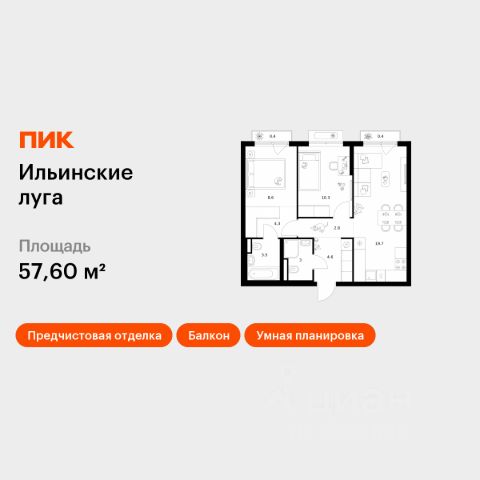 Продаётся 2-комн. квартира площадью 57,3 кв.м на 5 этаже 9 этажного дома (Корпус 4.3, Секция 4) проекта ПИК Ильинские луга. Светлый просторный подъезд на уровне земли, функциональная планировка, большие окна, предчистовая отделка. Жилой район "Ильинские луга" находится в 10 километрах от МКАД по Новорижскому шоссе, в 20 минутах на автомобиле от станций метро "Волоколамская", "Тушинская" и "Строгино". В будущем ближе к проекту, в 9 минутах пути на машине, откроется станция "Ильинская" Рублёво-Архангельской линии, которая будет соединять Арбатско-Покровскую линию и Большую кольцевую линию. Сейчас в квартале начались продажи в корпусах 3.2, 3.3, 3.4, 3.5 и 3.6. "Ильинские луга" — масштабный проект, в который входит девять детских садов, четыре школы и поликлиника. Он строится в престижном и экологичном районе среди лесов и памятников природы. За 5 минут от жилого квартала можно доехать до Рублёво-Успенского шоссе, а за 30 минут — до центра Москвы. До крупного торгового центра "РИГАМОЛЛ" всего 5 минут на автомобиле, а до ТЦ "Твой дом" и гипермаркета "Глобус" — 10 минут. В "Ильинских лугах" строятся только девятиэтажные дома — такая архитектура соответствует спокойной жизни за городом. В каждом дворе-парке есть места для отдыха, детские и спортивные площадки. А ещё, здесь уже открыт большой ПлейХаб "Гравити" — современное игровое пространство с космической тематикой, холмами, зонами для игр и отдыха жителей любого возраста. На первых этажах уже работают магазины, кафе и пекарни. Места для отдыха от "Ильинских лугов" тоже недалеко: 10 минут на машине — и вы в музее-усадьбе "Архангельское". Также рядом находится Лохин остров — памятник природы, где водятся речные черепахи, есть места для кемпинга и возможность сплавиться по реке. Артикул 1012137 (Застройщик ООО "СЗ "ГРАДОЛИМП")