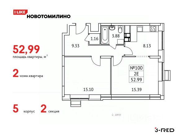 Общая площадь: 54.00 м.кв., Жилая площадь: 27.70 м.кв., Площадь кухни: 10.00 м.кв.