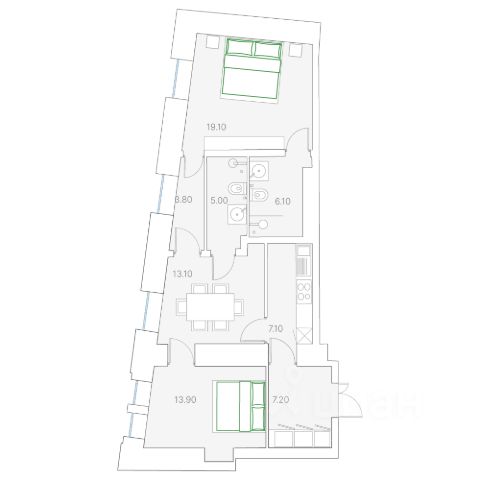 Светлая квартира площадью 88.6 кв. м с окнами на южной стороне. Продуманная планировка позволяет разместить одну или две отдельные спальные комнаты. "Лаврушинский" - бескомпромиссный дом с лучшими видами на Кремль. Благодаря расположению всего в одном километре от Кремля, своей высоте и малоэтажной окружающей застройке, из квартир открываются поразительные прямые виды на главные достопримечательности центра Москвы, включая храм Христа Спасителя и собор Василия Блаженного. Расположение в глубине квартала, посередине парка, дает удивительное для центра ощущение тишины и простора. На закрытой территории находится самый большой на элитном рынке собственный ландшафтный парк площадью 1,4 га с фонтаном, ручьём, зонами для воркаута и тихого отдыха. KIDS LAB: развивающая детская площадка на улице и игровая комната в помещении. FIT LAB: фитнес-клуб с 25-метровым бассейном, beauty room, доступные только для жителей. В проекте уникальный выбор квартир с просторными балконами, пентхаусов с террасами, бассейнами и каминами, максимальными видовыми характеристиками, а также роскошных вилл. Всего - 153 квартиры и 101 продуманное планировочное решение. Высота потолков составляет от 3,5 до 8,25 м. В доме предусмотрен 2х-уровневый паркинг на 279 машино-места. В доме предусмотрен полный комплекс систем комфорта, включающий приточно-вытяжную вентиляцию с тонкой фильтрацией с принципом забора воздуха с высоты 50 метров для повышения продолжительности жизни, отдельный сервисный лифт для обслуживающего персонала и другие современные системы.