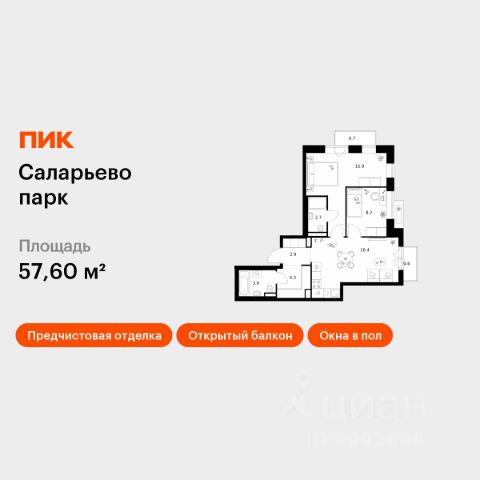Продаётся 2-комн. квартира площадью 51 кв.м на 5 этаже 18 этажного дома (Корпус 74.1, Секция 1) проекта ПИК Саларьево парк. Светлый просторный подъезд на уровне земли, функциональная планировка, большие окна, c отделкой. Жилой район "Саларьево парк" расположен в Новой Москве, в четырёх километрах от МКАД по Киевскому шоссе. Две станции метро: "Саларьево" и "Филатов луг", — находятся в пешей доступности от проекта. Дойти до них можно за 510 минут. В квартале уже создана качественная среда, где есть абсолютно всё для полноценной жизни, работы и отдыха. Благодаря удобному расположению проекта всё важное будет рядом: детские сады, школы, кафе и рестораны, шопинг в торговых центрах, фитнес и даже аэропорт. Все корпуса в квартале гармонично сочетаются, образуя единую городскую среду. Между собой их объединяет невысокая этажность и натуральная цветовая гамма. Здесь приятно гулять и проводить время на улице всей семьёй. В "Саларьево парке" создана уникальная образовательная среда, включающая в себя шесть школ, рассчитанных на 6 250 учеников. Две из них уже открыты, их посещает 2 300 детей. Также на территории "Саларьево парка" находится 12 детских садов, один из которых с бассейном. Сейчас уже открыты 7 садов. В "Саларьево парке" открыта уникальная игровая площадка — PlayHub "Оригами". Здесь есть ручей, горка-труба и рельефные холмы. Взрослые смогут отдохнуть в уютном кафе, пока дети играют. Также на территории проекта есть SportHub — большая спортивная зона, разделённая по интересам и возрастам. Здесь можно заниматься разными видами спорта: футболом, баскетболом, волейболом и стритболом. Зимой центральную часть площадки превращают в каток. Во дворах-парках жилого квартала есть места для отдыха, детские и спортивные площадки. На первых этажах домов расположены магазины, кафе и полезные сервисы. Также вблизи проекта есть несколько масштабных торговых центров. До ТЦ "Саларис" пять минут пешком, до "Рио", Metro Cash & Carry и "Леруа Мерлен" — пять минут на автомобиле. Артикул 1006078 (Застройщик ООО "Специализированный Застройщик "Тирон")