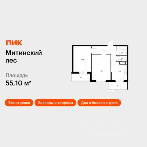 Продаётся 2-комн. квартира площадью 71,8 кв.м на 5 этаже 24 этажного дома (Корпус 15.1, Секция 1) проекта ПИК Митинский лес. Светлый просторный подъезд на уровне земли, функциональная планировка, большие окна, без отделки. Жилой квартал "Митинский лес" строится в Митино — районе, известном хорошей экологией. По соседству с домами протянулся большой парк. За 20 минут отсюда можно дойти до метро "Пятницкое шоссе", а за 30 — доехать на автомобиле до центра Москвы. В проекте жилые дома, 2 детских сада на 150 и 235 мест, школа на 1100 мест и подземные паркинги на 525 машиномест. В зелёных дворах-парках будут места для отдыха, современные детские и спортивные площадки. На первых этажах откроются магазины, кафе и другие сервисы — за кофе и свежим хлебом к завтраку можно будет просто спуститься на лифте. Рядом с жилым кварталом — хорошо развитый район. За 5 минут можно доехать до школ, детских садов, торговых центров, кафе и спортзалов. А в трёх минутах ходьбы находится Митинский парк, где приятно гулять и заниматься спортом. Артикул 688257 (Застройщик АО СЗ "ПФК")