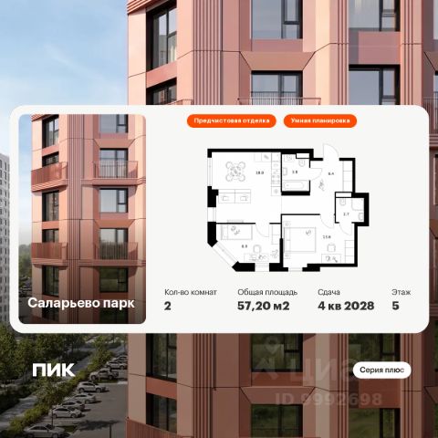 Продаётся 2-комн. квартира площадью 48,9 кв.м на 5 этаже 24 этажного дома (Корпус 82.4, Секция 4) проекта ПИК Саларьево парк. Светлый просторный подъезд на уровне земли, функциональная планировка, большие окна, предчистовая отделка. Жилой район "Саларьево парк" расположен в Новой Москве, в четырёх километрах от МКАД по Киевскому шоссе. Две станции метро: "Саларьево" и "Филатов луг", — находятся в пешей доступности от проекта. Дойти до них можно за 510 минут. В квартале уже создана качественная среда, где есть абсолютно всё для полноценной жизни, работы и отдыха. Благодаря удобному расположению проекта всё важное будет рядом: детские сады, школы, кафе и рестораны, шопинг в торговых центрах, фитнес и даже аэропорт. Все корпуса в квартале гармонично сочетаются, образуя единую городскую среду. Между собой их объединяет невысокая этажность и натуральная цветовая гамма. Здесь приятно гулять и проводить время на улице всей семьёй. В "Саларьево парке" создана уникальная образовательная среда, включающая в себя шесть школ, рассчитанных на 6 250 учеников. Две из них уже открыты, их посещает 2 300 детей. Также на территории "Саларьево парка" находится 12 детских садов, один из которых с бассейном. Сейчас уже открыты 7 садов. В "Саларьево парке" открыта уникальная игровая площадка — PlayHub "Оригами". Здесь есть ручей, горка-труба и рельефные холмы. Взрослые смогут отдохнуть в уютном кафе, пока дети играют. Также на территории проекта есть SportHub — большая спортивная зона, разделённая по интересам и возрастам. Здесь можно заниматься разными видами спорта: футболом, баскетболом, волейболом и стритболом. Зимой центральную часть площадки превращают в каток. Во дворах-парках жилого квартала есть места для отдыха, детские и спортивные площадки. На первых этажах домов расположены магазины, кафе и полезные сервисы. Также вблизи проекта есть несколько масштабных торговых центров. До ТЦ "Саларис" пять минут пешком, до "Рио", Metro Cash & Carry и "Леруа Мерлен" — пять минут на автомобиле. Артикул 1032542 (Застройщик ООО "Специализированный Застройщик "Тирон")