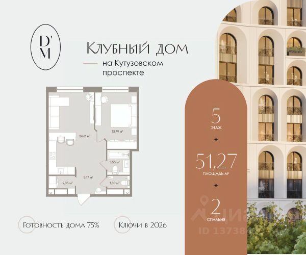Клубный дом DORO MILLE расположен в одном из самых престижных и исторически значимых районов Москвы — Дорогомилово. Уникальная локация DORO MILLE, где гармонично сочетаются тишина, приватность и доступность ко всем важнейшим объектам столицы. Дорогомилово — это "тихий центр", предлагающий своим жителям не только спокойствие и уют, но и великолепную транспортную доступность. Клубный дом расположен всего в 7 минутах ходьбы от станции метро "Киевская", а также в непосредственной близости к Кутузовскому проспекту, одной из главных магистралей Москвы. Отсюда легко добраться до всех значимых деловых и культурных центров: в нескольких минутах езды Садовое и Бульварное кольцо, Кремль, Москва-Сити, ЦУМ и ГУМ. Комплекс расположен в глубине Дорогомиловских улиц, вдали от городского шума и суеты. Здесь царит атмосфера старомосковской аристократичности, где соседствуют исторические здания и современные комплексы. Каждый элемент в DORO MILLE продуман до мелочей: от элегантного фасада, состоящего из 343 арок, до просторных лотов с выверенной эргономикой и безупречного сервиса. Архитектура вдохновлена итальянским неоимпериализмом и испанским неомодернизмом, придавая зданию неповторимую легкость и изящество. Всего 150 апартаментов и 6 пентхаусов предлагают широкий выбор планировочных решений, включая студии, варианты с одной-четырьмя спальнями, каминами и верандами. Каждый лот спроектирован так, чтобы увеличить эффективное пространство и обеспечить максимальный комфорт для резидентов: окна в ванных комнатах, несколько гардеробных и просторные гостиные-столовые. Жители DORO MILLE смогут наслаждаться не только исключительными условиями проживания, но и полной приватностью. Закрытый двор-сад без машин, выполненный по проекту архитектурного бюро Wowhaus, превратится в собственный зеленый оазис в центре Москвы с функциональными зонами для отдыха и спорта. Проект был высоко оценен профессиональным сообществом, завоевав множество наград, включая премию Move Realty Awards за лучшие архитектурные решения и премию Urban Awards за создание нового формата недвижимости. Клубный дом DORO MILLE — это истинное воплощение мечты о городской жизни в окружении искусства, уюта и изящной архитектуры. Возможно приобретение по специальным условиям. Стоимость апартамента указана с учетом применения скидки от застройщика. Подробности о проекте и условиях покупки уточняйте в отделе продаж.