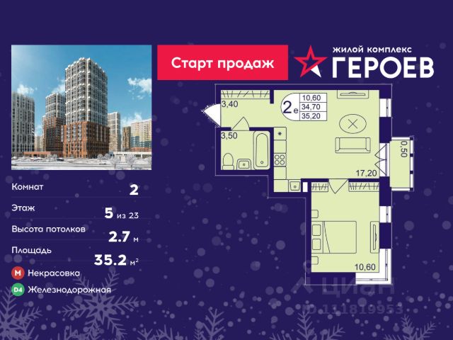 Продаётся 2-комнатная квартира в формате евро 41.30 кв. м. в жилом комплексе "Героев" в Балашихе, Железнодорожный. Квартира расположена на 5 этаже 610 корпуса. В наличии квартиры с отделкой. Всего 40 минут до центра Москвы. При покупке квартиры в сданном доме ключи выдаются сразу! Жилой квартал "Героев" - это уютный проект для семей с детьми. В квартале созданы все условия для досуга всех возрастов: игровые и спортивные площадки, места для отдыха и прогулочные зоны. За 15 минут можно дойти от дома до Ольгинского лесопарка, популярного места для отдыха на свежем воздухе. На территории жилого комплекса уже открыт детский сад на 250 мест и началось строительство еще одного - для 220 малышей, а также школы для 1320 учеников. Рядом работают магазины, кафе, супермаркеты, пункты выдачи. Преимущества: • В уютных светлых квартирах с просторными кухнями-гостиными удобно встречать гостей и проводить время наедине друг с другом. • Благодаря увеличенному остеклению в комнатах много света. • Квартиры продаются с отделкой, можно заселяться сразу после получения ключей.