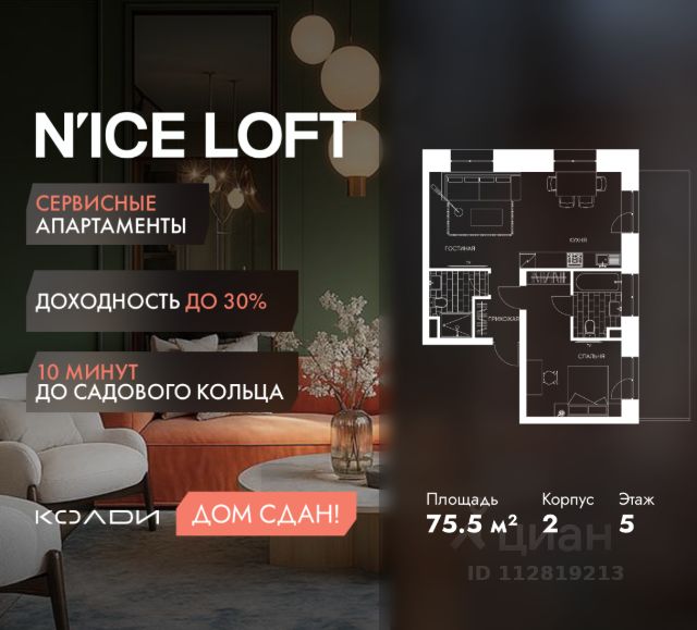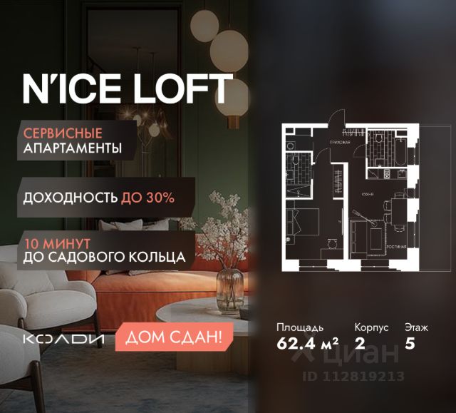 Продаются готовые апартаменты Nice Loft общей площадью 52 кв.м. на 5 этаже. Свободная планировка, черновая отделка позволит воплотить ремонт своей мечты! NICE LOFT находится всего в 7 минутах ходьбы от станции МЦД Калитники, и удобства городской жизни сочетает с доступностью больших зеленых зон, где можно отдохнуть или заняться спортом на свежем воздухе. Это Таганский парк одна из самых старых парковых территории Москвы, а также народный парк Карачарово. Удобное расположение проекта выгодно для резидентов и инвесторов. 7 мин. пешком до МЦД Калитники 25 мин. пешком до Таганского парка 10 мин. на машине до Таганской площади 10 мин. на машине до Садового кольца И всего 5 км до Кремля NICE LOFT это готовый инвестиционный актив, который сочетает в себе удобную локацию, уникальную инфраструктуру и высокую доходность. Комплекс привлекает внимание платежеспособных арендаторов благодаря продуманной концепции комфортного образа жизни. Внутренняя и внешняя инфраструктура состоят из опций, необходимых для комфортной жизни, спорт, кафе и рестораны, бытовые услуги, места для прогулок и отдыха. Спортивная инфраструктура площадью более 20 000 м² включает 2 ледовые арены формата НХЛ, спортивный парк и километровую беговую дорожку. Это важное преимущество делает N'ICE LOFT центром притяжения для активных и успешных людей и влияет на рост арендных ставок. Нестандартная архитектура комплекса подчеркивает его высокий статус плитка под клинкерный кирпич, алюминиевые панели, игра света и тени, а также сочетание различных материалов и фактур формируют облик современного и стильного комплекса. Особое внимание архитекторы уделили входной группе — просторное авторское лобби с потолками до 9 метров с использованием природных элементов. Резиденты и их гости смогут насладиться садом, не покидая пределы дома. В лобби предусмотрены зоны для приема гостей и отдыха, стильный кофе-поинт, банкоматы, а также круглосуточный консьерж-сервис. ОДИН ВЗРОСЛЫЙ СОБСТВЕННИК! БЕЗ ОБРЕМЕНЕНИЯ! ДОКУМЕНТЫ ВСЕ ГОТОВЫ К СДЕЛКЕ! КЛЮЧИ НА РУКАХ! ПРОСМОТР В УДОБНОЕ ДЛЯ ВАС ВРЕМЯ!