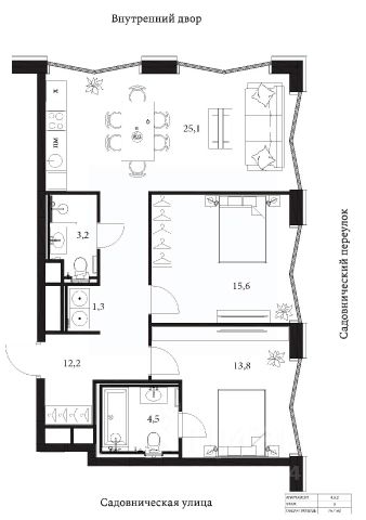 Продается просторная квартира площадью 132.60 м2 в жилом комплексе ТАТАРСКАЯ, 35. Квартира находится в 1 секции корпуса 2. Этаж 5-й из 19. Квартира без чистовой отделки, с просторной кухней 58.40 м2. Жилая площадь 31.90 м2. Высота потолка от 3.50. ТАТАРСКАЯ, 35 - новая архитектурная доминанта Замоскворечья, достопримечательность на фотопанорамах исторического центра Москвы. Элитный дом, созданный для тех, кто умеет смотреть далеко вперед, мыслить масштабно и воплощать собственный сценарий жизни. Вдохновляющие прогулки по променаду набережной, в уютных переулках, в парке "Зарядье", в Михайловском саду и Репинском сквере. Наслаждение высоким искусством в Третьяковской галерее, Доме Музыки, театральном музее им. А.А. Бахрушина, театре на Малой Ордынке. За окнами - Кремль, высотка на Котельнической, панорамы Замоскворечья и острова Балчуг, огни Садового кольца. Собственные спорт-румы, детская, репетиторская, бьюти-пространства, деловое пространство с коворкингом, переговорной и сигарной. Собственный трехуровневый фитнесс-центр с бассейном, тренажерным залом, сауной, хаммамом, массажным кабинетом. Площадь двора - 1,8 га, половина территории покрыта деревьями, кустарниками и лужайками. Дом расположен внутри Садового кольца - отсюда в считанные минуты можно добраться до важнейших мест столицы: достопримечательностей и парков, театров и ресторанов, деловых и административных центров. 7 минут до Кремля на автомобиле, 15 минут до Третьяковской галереи и 8 минут до Садового кольца пешком. Планировочные решения и визуализации предварительны, возможны изменения.
