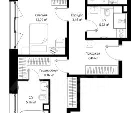 Продается 2-комн. квартира площадью 54 кв.м на 6 этаже 24 этажного дома в ЖК "Союзный" от федерального девелопера ГК "Вектор".