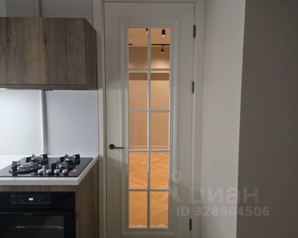 На полу в комнатах инженерная доска из дуба (елочкой). Межкомнатные двери 230 см из массива. Стены и потолок под покраску.