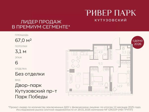 Перспектива роста стоимости: Кутузовский проспект один из самых престижных районов Москвы с высокой ликвидностью недвижимости. Цены в районе на ЖК такого уровня 1,2-1,5 млн руб кв м, покупая за 685 тыс кв метр, ваша выгода Х2-Х2.5!!