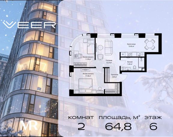 Старт продаж новой очереди! Продаётся 2-комнатная квартира общей площадью 74.07 м² без отделки в ЖК VEER на 6-м этаже 25 этажного дома. VEER.2 — вторая очередь футуристичного квартала бизнес-класса VEER. Это новая экосистема в престижном Западном округе Москвы, поражающая масштабностью внутренней инфраструктуры. ЖК находится всего в 5 минутах от Кутузовского проспекта и в 15 минутах от Сколково. Ансамбль из четырех стеклянных башен с доминантой в 237 метров разработан по принципу современного урбанизма и выражен в лаконичных объемах — параллелепипедах со сглаженными углами, которые придают зданиям утонченный вид. Расположение и транспортная доступность: • Образовательный комплекс в составе топовой школы, состоящий из двух зданий: основное на 1500 школьных и 450 дошкольных мест, отдельное здание детского сада на 300 мест. • Парк "Долина реки Сетунь" площадью более 700 гектаров • Рядом МГУ, МГИМО, РАНХиГС и Академия ФСБ • 15 минут по Кутузовскому проспекту до ужина в центре с видом на Москву-реку • 18 минут пешком до м. "Давыдково" • Открытие новых станций метро в шаговой доступности в будущем Инфраструктура: Двор в VEER.2 — это ассиметричные холмы, каменные "лабиринты", зеленые ковры и хвойные островки с единой живой экосистемой. Здесь есть все: • Павильон умиротворения Место отдыха под навесом в спокойной части двора, окруженное деревьями. • Активная тропа Тактильная дорога из камней разного диаметра для расслабляющих прогулок. • Бизнес-гарден Оборудованное пространство для работы на свежем воздухе со столом и встроенными розетками. • Детская площадка Двухуровневая площадка "Ботаника" с песочницей, переговорной трубой и горкой "Дружба". Компания MR предлагает своим клиентам специальные условия приобретения квартир в рамках программ ипотечного кредитования от банков-партнеров.