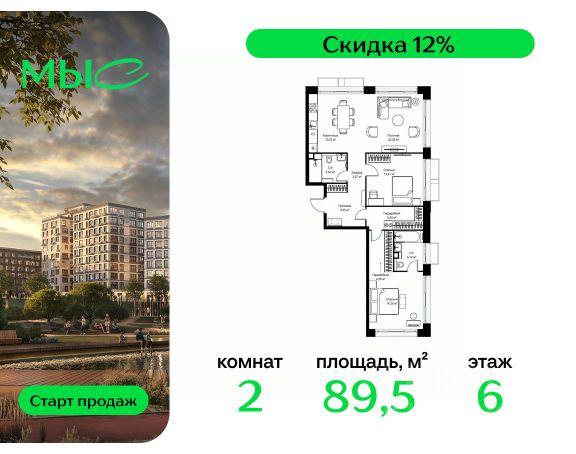 Прямая продажа от застройщика. Продаётся 2-комнатная квартира общей площадью 91.29 м² без отделки в премиальном жилом комплексе "МЫС" на 6-м этаже 8 этажного дома. Проект МЫС — это, прежде всего, идеальное место для семей. В рамках проекта построят государственную школу, два детских сада и дворец спорта площадью 20 000 м2 с термальным комплексом, выплывным бассейном, фитнес-залом, теннисными, сквош и падел кортами и секциями для детей. На территории площадью, сравнимой с тремя парками Зарядье, появятся кафе и рестораны, пруд с набережной, спортивные и детские площадки, скейт-парк, лыжные и веломаршруты. Расположение: - 2 минуты до скоростной трассы М1 и Минского шоссе; - 10 минут до МКАД; - 15 минут до МЦД Лесной Городок - 20 минут до делового центра "Москва-Сити"; - 28 минут до аэропорта "Внуково". Благоустройство: - велосипедные и лыжные маршруты; - собственная набережная и парк; - лаунж-зоны в окружении природы; - беседки у очага; - дворец спорта площадью 20 000 м²; - термальный комплекс с тремя бассейнами; - 4 теннисных и падел-корта; - 6 сквош-кортов; - многофункциональный спортзал; - скейт-парк; - просторная площадь для прогулок с фонтаном; - детский Клуб с творческими секциями; - гастро-доминанта; - кафе у пруда, рестораны, ритейл. Окружение - соседство с лесным фондом; - школа на 1250 мест и 2 детских сада на 350 и 255 мест; - Дубковский и Подушкинский леса, парк "Рассказовка", Мещерский парк. Действуют специальные условия при 100% оплате, подробности уточняйте у менеджера в офисе продаж.