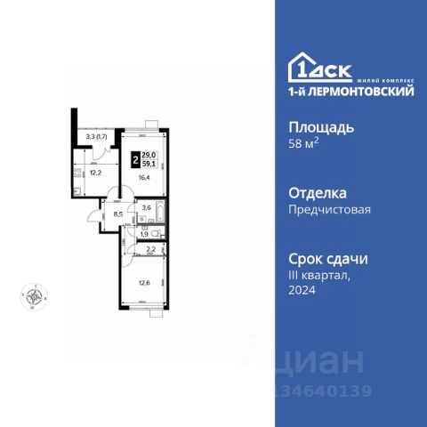 Прямая продажа от застройщика! Жилой Комплекс класса Комфорт Плюс. Продаётся 2-к квартира номер 362 общей площадью 58.9 кв.м. на 6-м этаже 24 этажного здания. Отделка Whitebox. Цена с учётом скидки. Особенности квартиры: - Просторная спальня, в которой можно разместить большую кровать. - Распашная планировка - отличное сочетание удобства и свободы. - Увеличенная ширина окна/окон - больше света и визуального простора. - Раздельный санузел - больше удобства для всех членов семьи. - Линейная кухня - функциональность и практичность в одном решении. - Ниша под шкаф - компактное и удобное место для вещей. - Кладовая - дополнительное пространство для хранения. - Лоджия - уютное место для отдыха и тишины. Квартира с предчистовой отделкой (White box). Вам не придется заниматься черновыми и трудоёмкими работы, а чистовую отделку и дизайн - сделайте на свой вкус. Информация о комплексе: Ощущение уютного дома должно начинаться с подъезда. Мы постарались предусмотреть все нюансы, чтобы наши лифты отвечали самым строгим современным требованиям. Двор без машин, закрытое, безопасное, охраняемое место с удобным доступом для вашего авто, более чистый воздух и гарантированное место для стоянки - и это далеко не преимущества наличия подземного паркинга. А наличие кладовых позволит вам поддерживать идеальный порядок и уют в вашей квартире! "1-й Лермонтовский" расположился недалеко от уже сложившегося зеленого окружения - Люберецкого парка и Жулебинского лесопарка, переходящего в природно - исторический парк "Кузьминки". Если вы предпочитаете активный семейный отдых на свежем воздухе - в округе мест для него предостаточно. С востока он граничит со столичным районом Некрасовка. С северной стороны - с развитым современным микрорайоном "Красная Горка". Удачное расположение дарит жильцам возможность передвижения как на своем автомобиле, так и на общественном транспорте. Транспортная доступность: В шаговой доступности ж/д станция "Люберцы-1". 5 минут на автомобиле до станций метро "Некрасовка", "Котельники", "Лермонтовский проспект" Внутренняя инфраструктура: Свободно перемещайтесь по внутренней территории в безбарьерной среде! На территории комплекса созданы все условия как для активного образа жизни, так и для спокойного времяпрепровождения: - игровые площадки для детей разного возраста. - площадки воркаута, спортивные комплексы с зонами для детского и взрослого спорта. - зоны отдыха с пешеходными дорожками и аллеями. Также, к вашим услугам: 4 общеобразовательные школы, 7 детских садов, спортивные и танцевальные, школы, поликлиники, множество магазинов и супер-маркетов, включая Ашан и несколько крупных ТЦ в шаговой доступности.