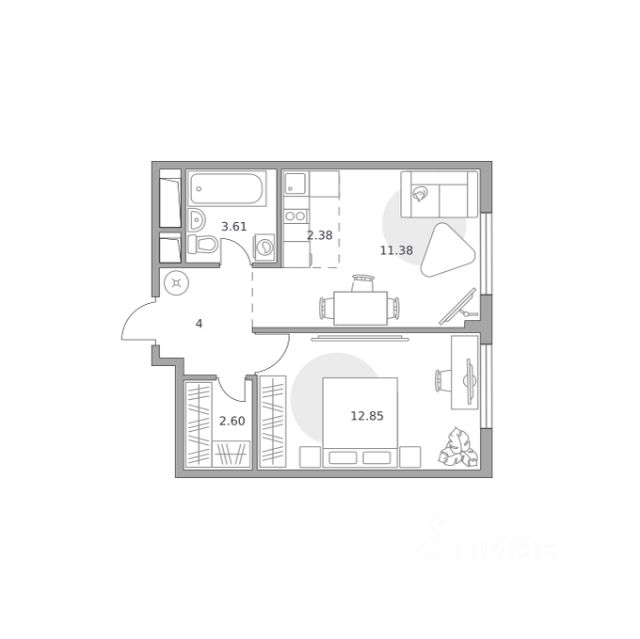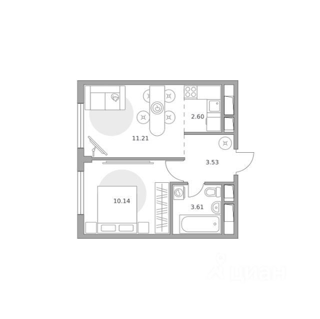 Продаётся 2-комнатная квартира 295, площадью 33,38 м², на 6 этаже в ЖК "Аникеевский" корпус 1.1. Стоимость — от 7042055 руб. Квартира без отделки, планировка односторонняя, окна на улицу.