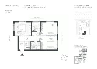 Продается 2-к квартира площадью 72.6 кв.м. на 6-м этаже в ЖК "Клубный квартал Крылатская 33". Прямая продажа от застройщика! Крылатская 33 - проект премиум-класса на западе Москвы от специализированного застройщика "Сияние". Комплекс расположен всего в 15 минутах от Садового кольца и Москва-Сити, а рядом есть большое количество зелёных зон: Крылатский и Москворецкий парки, Серебряный бор, Крылатские холмы - это создает идеальный баланс между приватностью и динамичным ритмом мегаполиса. Квартал сочетает высотные башни до 150 метров и камерные малоэтажные корпуса. Витражное остекление "в пол" наполняет квартиры светом и открывает захватывающие панорамы на Москву-реку и знаковые виды столицы. Здесь каждый найдет то, что подходит именно ему - от уютных студий до роскошных пентхаусов и квартир с собственными террасами. Внутренняя среда жилого комплекса продумана до мельчайших деталей, чтобы резиденты могли продуктивно работать и качественно отдыхать, не покидая территорию: • фитнес-центр, включающий в себя СПА-зону; • коворкинг с кофейней и быстрым интернетом; • общественная гостиная для организации клубных мероприятий; • ресторан с панорамным остеклением; • благоустроенный сад с зоной отдыха; • инновационная игровая площадка для детей всех возрастов; • консьерж-сервис 24/7, современные системы видеонаблюдения и пожаротушения; • двухуровневый паркинг и многое другое. Район Крылатское - точка притяжения для тех, кто выбирает активный образ жизни. В непосредственной близости расположены Гребной канал, Олимпийский велотрек, горнолыжный комплекс "Лата Трэк", гольф-клуб и парковые зоны. В проекте действуют привлекательные условия покупки: - выгода до 10% при 100% оплате (действует на ограниченный пул квартир, подробности уточняйте в отделе продаж). - рассрочка от застройщика 0% с первоначальным взносом от 20% на срок до 30.06.2027.