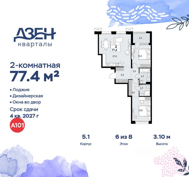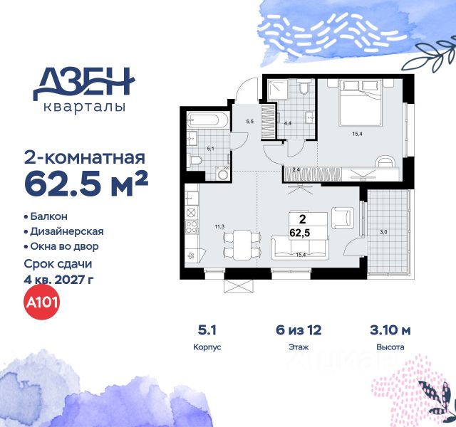 В жилом комплексе, расположенном по соседству с ландшафтным парком "Южное Бутово", продается 2-комнатная квартира площадью 53.20 кв. м. с отделкой. Квартира расположена на 6 этаже 2 корпуса в жилом квартале комфорт-класса "Новые Смыслы" (ГК Unikey/Юникей). Доступная и удобная локация: - 10 минут ходьбы до станции метро "Потапово". - 25 минут ходьбы до станции метро "Бунинская аллея". - 15 минут на авто до Калужского шоссе. - 20 минут на авто до МКАД. - 30 минут на машине до аэропортов "Внуково" и "Остафьево". Продуманный архитектурный проект: - Разноуровневые секции с эстетичные башнями и контрастными цветовыми сочетаниями, напоминающими башни в Сити. - Сказочные виды из окон на современный район столицы. - Авторские планировки с потолками в 3 метра, просторными кухнями-гостиными и мастер-спальнями. - Комфортные бесплатные общественные пространства. - Подземный паркинг с прямым доступом на лифте. - Настоящий лес с живописными пейзажами и прудом прямо во дворе. Расположение Комплекс "Новые Смыслы" расположится в благоприятном районе Новой Москвы - Коммунарка. Зеленое окружение, богатая инфраструктура развивающегося района - все это сформирует особое пространство для комфортной жизни, наполненной смыслом. 10 минут на велосипеде - и вы в ландшафтном парке "Южное Бутово" или сквере у Потаповских прудов. Чуть дальше расположен Бутовский лесопарк. В окружении "Новых Смыслов" вы найдете все необходимые социальные объекты. В двух шагах от дома находится 5 школ, более десятка детских садов, секции для занятий малышей и подростков, частные клиники, супермаркеты, рестораны, студии красоты и фитнес-центры. За 12 минут на авто вы доберетесь до ледовой арены, комплекса "Спорт Станция" и спа-центра "Termoland". Внутренняя инфраструктура Для жителей "Новых Смыслов" будут созданы бесплатные общественные пространства: - Деловая гостиная с эстетичным коворкингом и переговорными. - Гостиная для души и тела, включающая фитнес-зону с тренажерами и пространства для стретчинга, йоги и медитаций. - Гостиная детства, где дети будут играть и развиваться под присмотром тьютора. - Кино-гостиная - кинотеатр на крыше одного из домов, предлагающий разнообразную программу. - Прачечная, работающая только для жильцов. Вместе с корпусами комплекса на территории запланировано строительство детского сада. На первых этажах корпусов откроются кофейни, пекарни, сервисы быта и пункты доставки. Благоустройство Чтобы отдохнуть от суеты города, достаточно выйти во двор: здесь раскинулся настоящий лес с живописными пейзажами. В тени деревьев жителей ждут пруд с мостиком и беседкой на берегу, тихие прогулочные аллеи, спортивная площадка и зоны для занятий йогой и бадминтоном на свежем воздухе. Юных жителей порадуют современные детские площадки, жукарий и специальное пространство для подвижных игр. Безопасность на территории гарантирована: двор огорожен от машин и оснащен камерами видеонаблюдения.