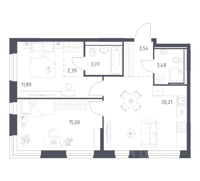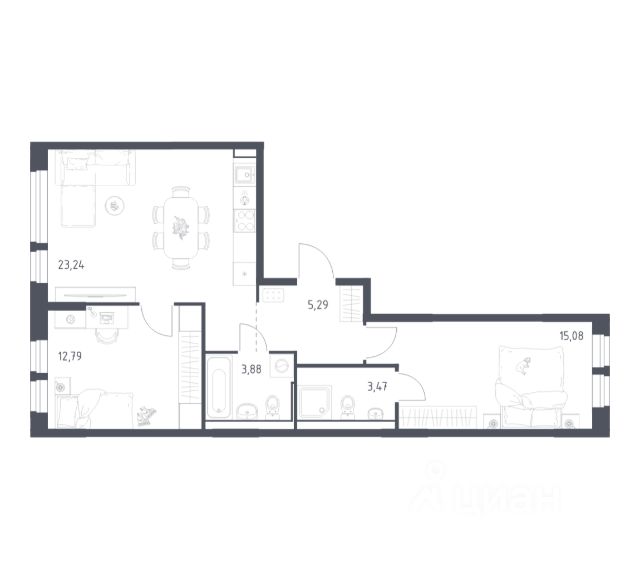 • Рациональная планировка позволяет с комфортом разместить всё необходимое для семьи.