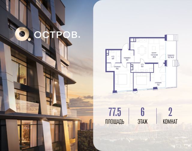 ID 204. Предлагается к продаже квартира 42.8 м2 с премиальной отделкой "под ключ" на 6/13 этаже ЖК "Остров" (1-й квартал).
