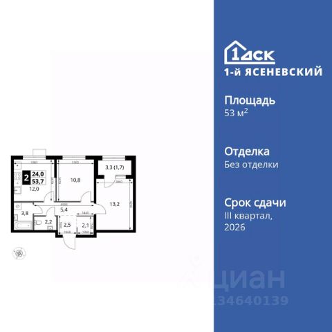 Прямая продажа от застройщика! Жилой Комплекс класса Комфорт Плюс. Продаётся 2-к квартира номер 34 общей площадью 53.7 кв.м. на 6-м этаже 18 этажного здания. Без отделки. Цена с учётом скидки. Особенности квартиры: - Квартиры рядом с метро - м. Корниловская 9 мин пешком - 63 га лесопарка за окнами - Школа c ИТ-кластером и бассейном. 2 детских сада - Организуем показ в удобное для вас время! - Линейная планировка - максимальная функциональность и удобство. - Раздельный санузел - больше удобства для всех членов семьи. - Гардеробная - удобство для хранения и организации вещей. - Лоджия - уютное место для отдыха и тишины. Квартира без отделки. Чистый холст для воплощения интерьера вашей мечты. Информация о комплексе: ЖК "1-й Ясеневский": преимущества городской инфраструктуры и природы. Пешая доступность к метро, школе с бассейном и ИТ-кластеру, а также 63 га Троицкого лесопарка под окнами. Закрытая территория с бульварами, велодорожками, кафе и дворами без машин. Фруктовые деревья и городские сады создают уникальную атмосферу. Всего в 1 км от МКАД - идеальный баланс для современной жизни. Транспортная доступность: До метро "Корниловская" - 12 минут пешком До метро "Тютчевская" - 25 минут пешком До метро "Теплый стан" - 10 минут на транспорте До метро "Ольховая" - 30 минут на общественном транспорте Личный автотранспорт: Выезд на Калужское шоссе - 500 м МКАД - 1 км Внутренняя инфраструктура: ЖК "1-й Ясеневский" - идеальное место для семей с детьми. Рядом Троицкий лесопарк для прогулок, а во дворах - современные детские площадки, разработанные с участием психологов. В шаговой доступности два детских сада и школа на 1100 мест с ИТ-кластером, бассейном и классами робототехники. Всё для счастливого детства и успешного будущего. Квартира без отделки - чистый холст для вашего интерьера.