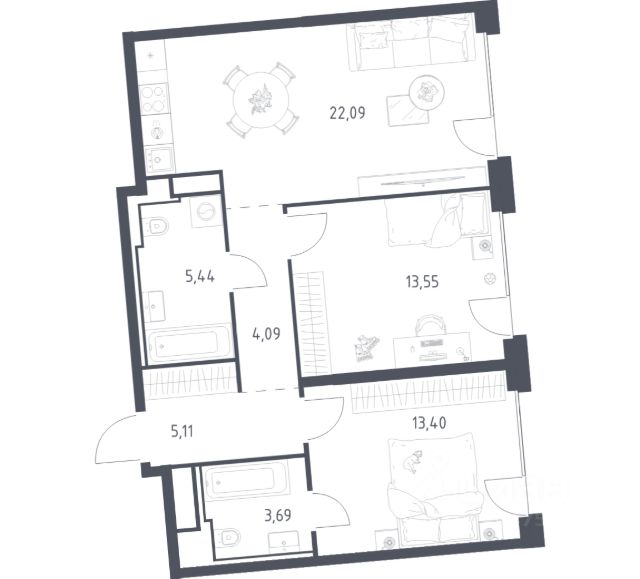 Указанная акционная стоимость доступна при 100% оплате или ипотеке без субсидирования. Цена действует до 18.01.2026 23:59:00. Стоимость без акции 29695600. Старт продаж! Продаётся 2-комнатная квартира от застройщика ГК "КОРТРОС" в жилом комплексе бизнес-класса ULTIMAcity. Квартира расположена на 6 этаже 52 этажного корпуса 2. Общая площадь 67,49 м². Без отделки. В квартире: • Мастер-спальня • Гардеробная • Два сан. узла ULTIMAcity — жилой комплекс бизнес-класса в перспективном районе на юго-востоке Москвы. На его территории появятся 9 башен на 756 этажей, двухуровневый подземный паркинг, собственная инфраструктура, включая детский сад и школу. Всего девелопер благоустроит территорию в 2,6 га. Ближайшая станция метро — "Южный порт". Она откроется в 2028 году и будет находиться в 2-х минутах ходьбы. А прямо напротив расположится остановка водного автобуса-электрохода "Синичка". Дорога от квартала будет удобна и для автомобилистов: - до Кремля — 12 км - до МКАД — 12 км - до выезда на ТТК — 3 км - до Садового кольца — 8 км В двух корпусах первой очереди ULTIMAcity этажностью 45 и 52 реализуется 1 079 квартир с продуманными, рациональными планировочными решениями. В ассортиментной линейке представлены однокомнатные квартиры от 28,2 до 61 кв. м, двухкомнатные лоты от 44,3 до 95,4 кв. м, квартиры с тремя (71 — 115,57 кв. м) и четырьмя спальнями (106,6 — 114,97 кв. м). В экспозиции также есть квартиры с террасами, лоджиями, тремя и четырьмя санузлами, а также с функциональными нишами-кладовыми на кухнях. Запроектированы и эксклюзивные двухуровневые резиденции со вторым светом, в том числе с видом на Москву-реку, площадью от 77,7 до 141,9 кв. м. В рамках проекта запланировано строительство 9 корпусов, школы на 500 учащихся и детского сада на 225 мест. Еще будет создана продуманная инфраструктура для жителей: детские и спортивные площадки, амфитеатр для мероприятий, беседки и теплицы для садоводства, коворкинг, детский клуб и ресторан с открытой террасой. Доступ в жилой комплекс осуществляется по биометрическому контролю - Face ID. Вокруг квартала будет приватная территория с видеонаблюдением и консьерж-сервисом 24/7. Лобби корпусов будут иметь двойные выходы: на улицу и во внутренний закрытый двор.