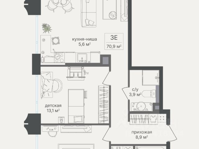 • ✅ Объект наибольшей площади: 70,9 м²